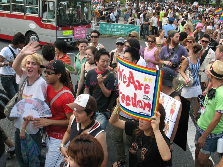 知人から連絡があって、「パレード自体の写真があんまり出てないよね」と言われました。意識してなかったのですが、たしかにそうかも。東急ハンズや角海老のトラック、ピンク物件、ATEの写真などを充実させることで頭がいっぱいで、パレード自体の写真はほんの数点しか出してませんでした。でも、パレードは、いっぱい人がいるだけで、毎年一緒じゃろ(ひどい)。