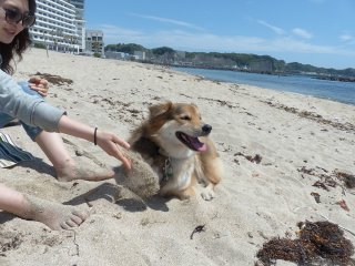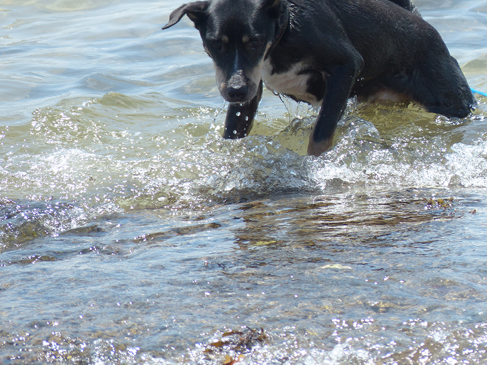 下の写真、左側が海。咲が左に行きたくないと踏ん張っているのが、おわかりになると思います。